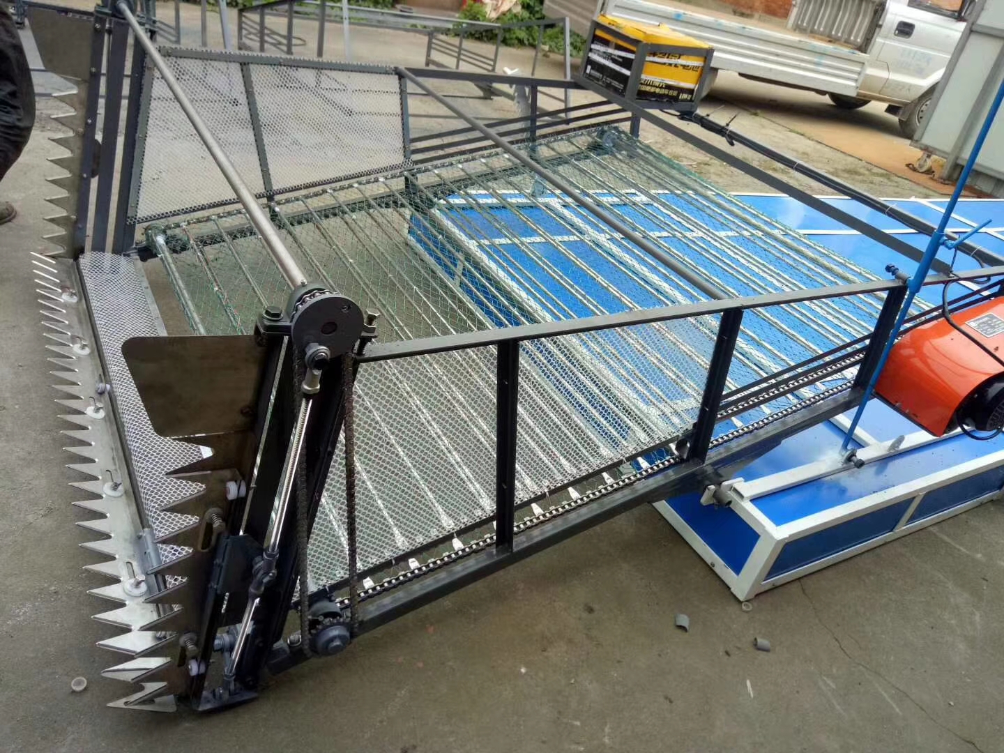 材質(zhì):框架碳鋼材質(zhì);鏈條、鏈輪、輸送桿采用不銹鋼材質(zhì);刀具總成采用錳鋼材質(zhì)。